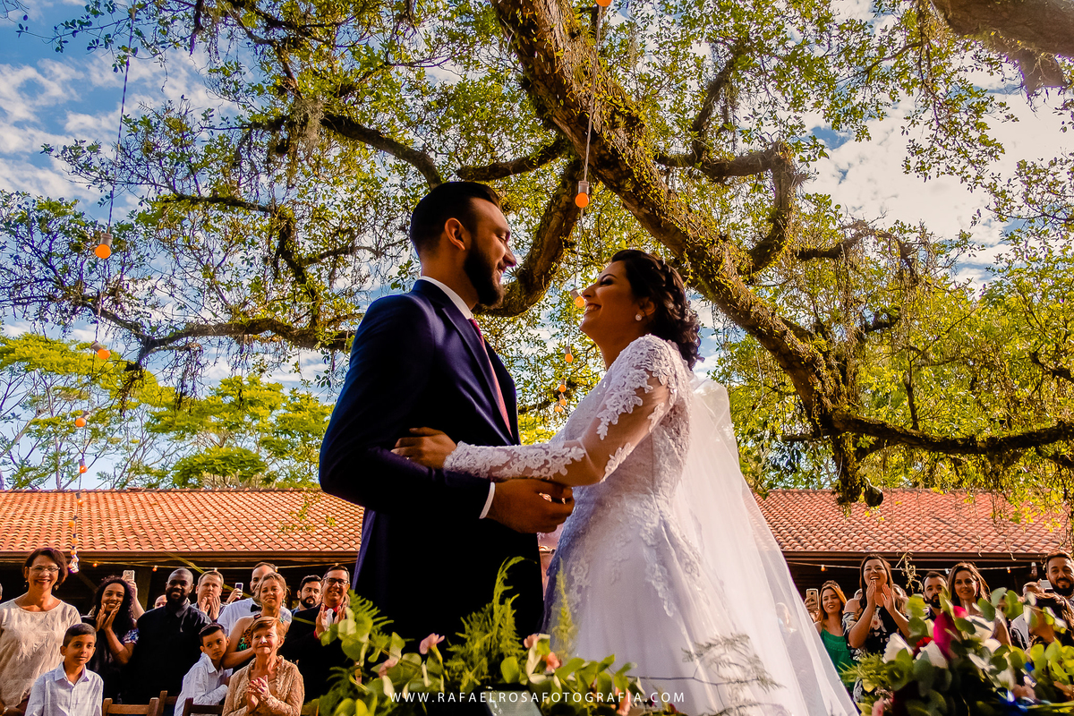 O sonho da Duda e do Ju, era um casamento a tardinha, com sol, embaixo da figueira - a chuva que caia no domingo, com certeza não iria impedir que isso acontece - pra Duda não tinha um plano B pro casamento ser coberto. Ahhh....mas Deus é muito bom, e preparou um presente tão especial pra abençoar esse dia, que ninguém imaginava - O SOL - não poderia ter maior prova de amor por essa união.