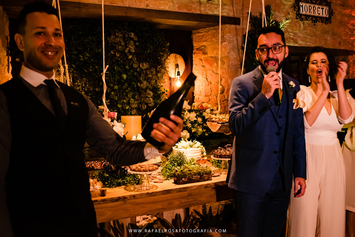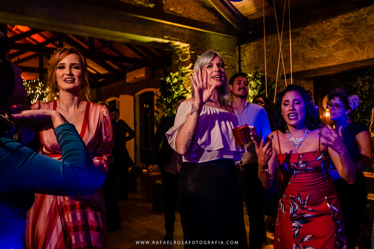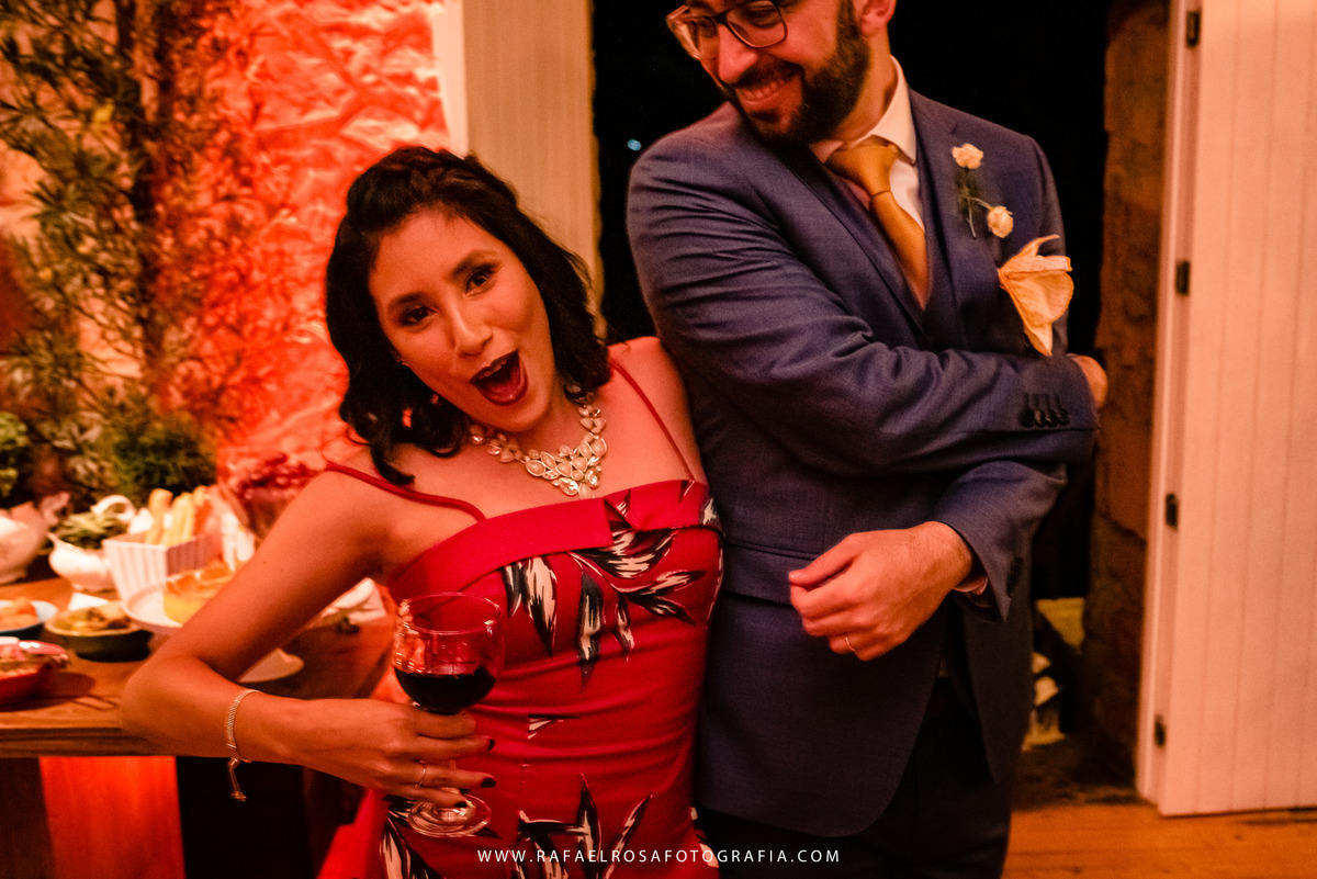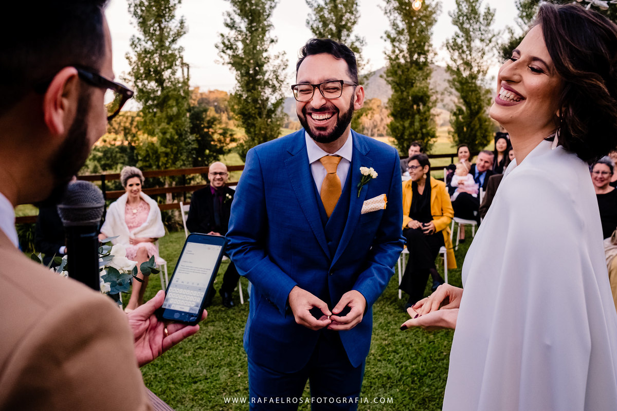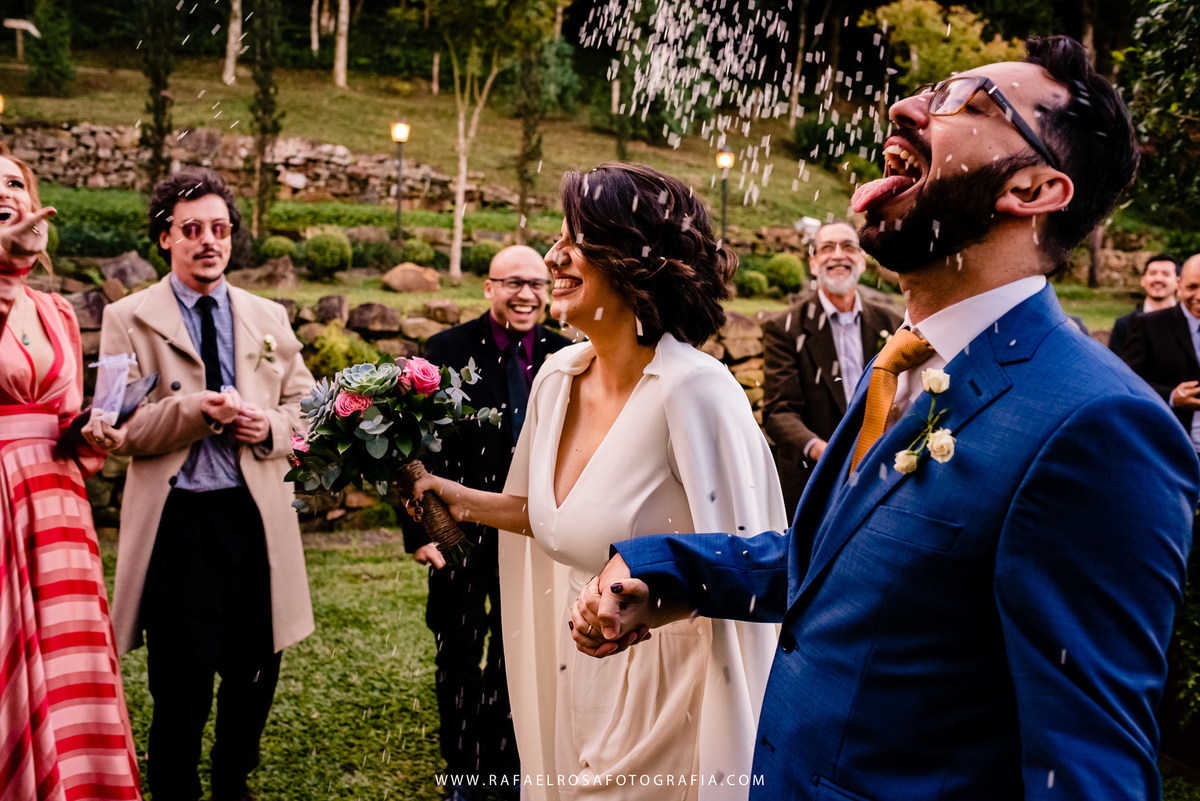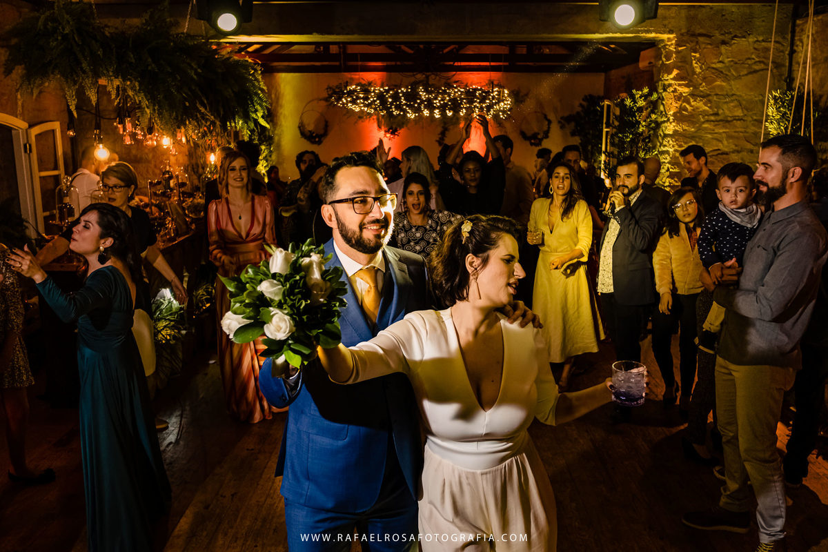 A celebração dessa união não poderia ser diferente deles, a começar pelo "vestido" da Lê - um macacão com um capa linda, casamento de dia, a entrada deles juntos, afinal estavam entrando numa nova etapa da vida juntos, um dia lindo, um casal conectado, famílias lindas e acolhedoras. O sorriso e a lágrima. Os amigos celebrando essa união. O pôr do sol.