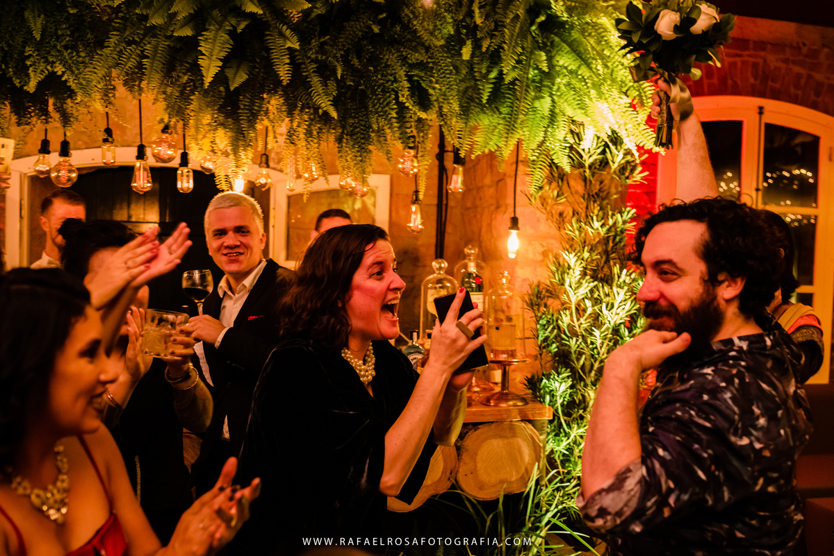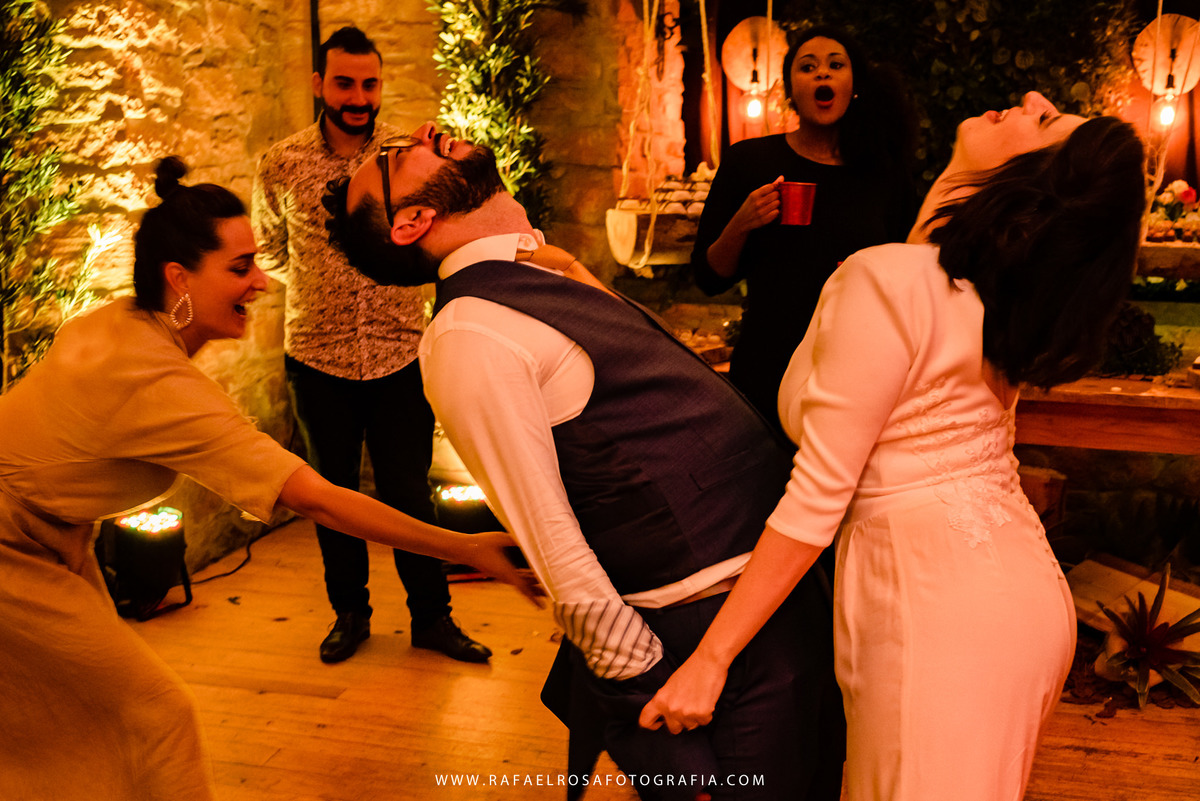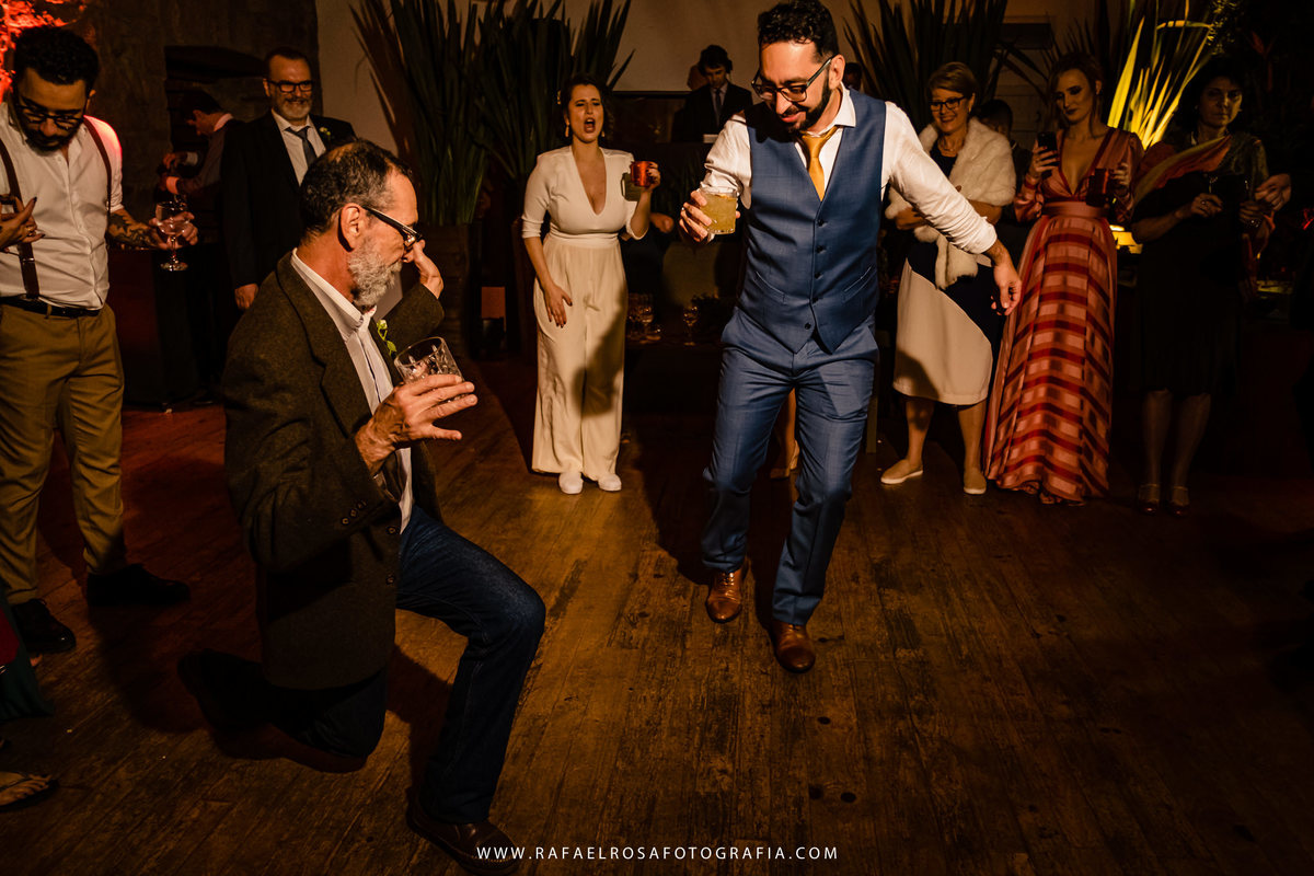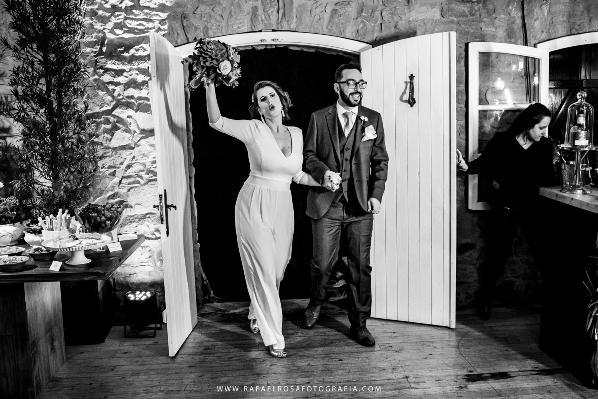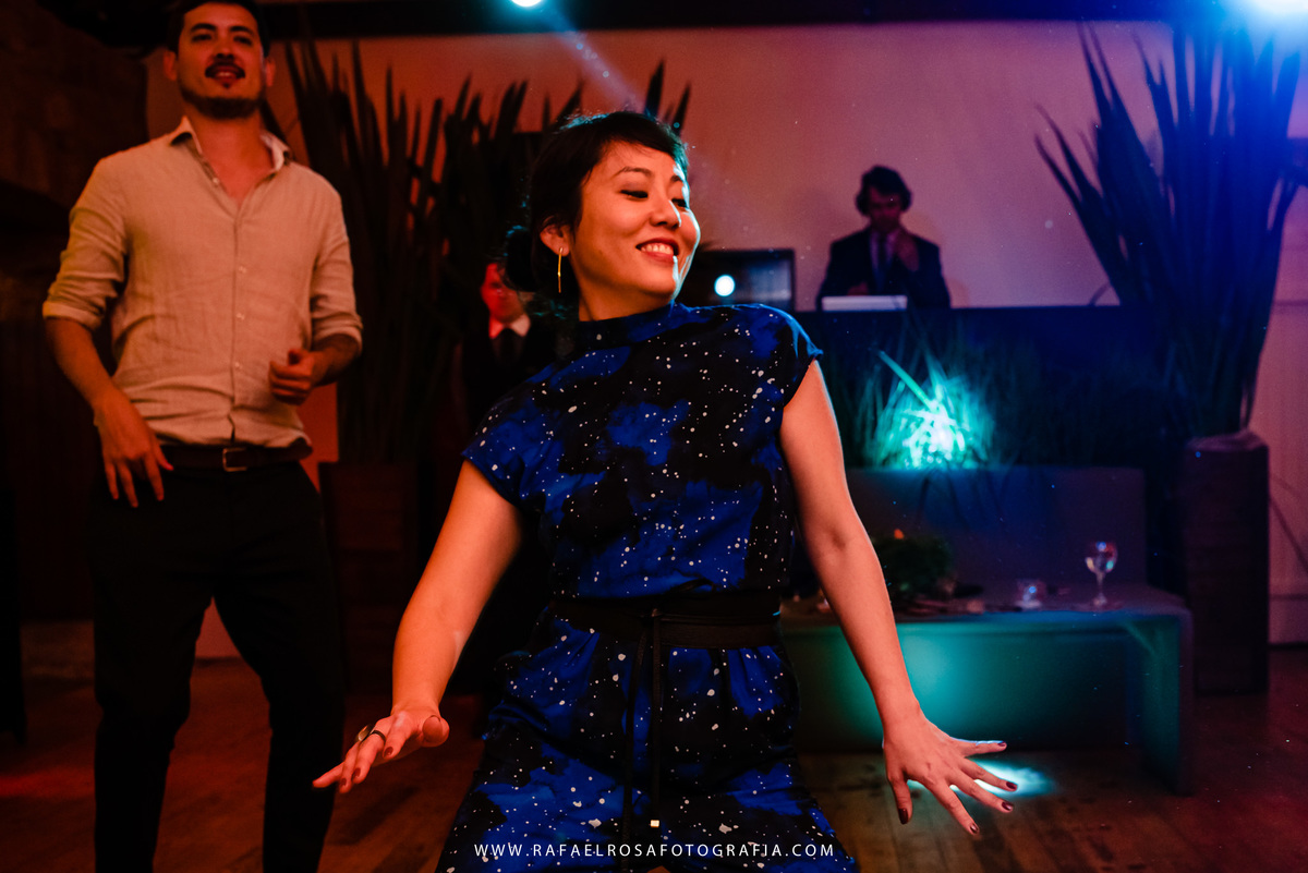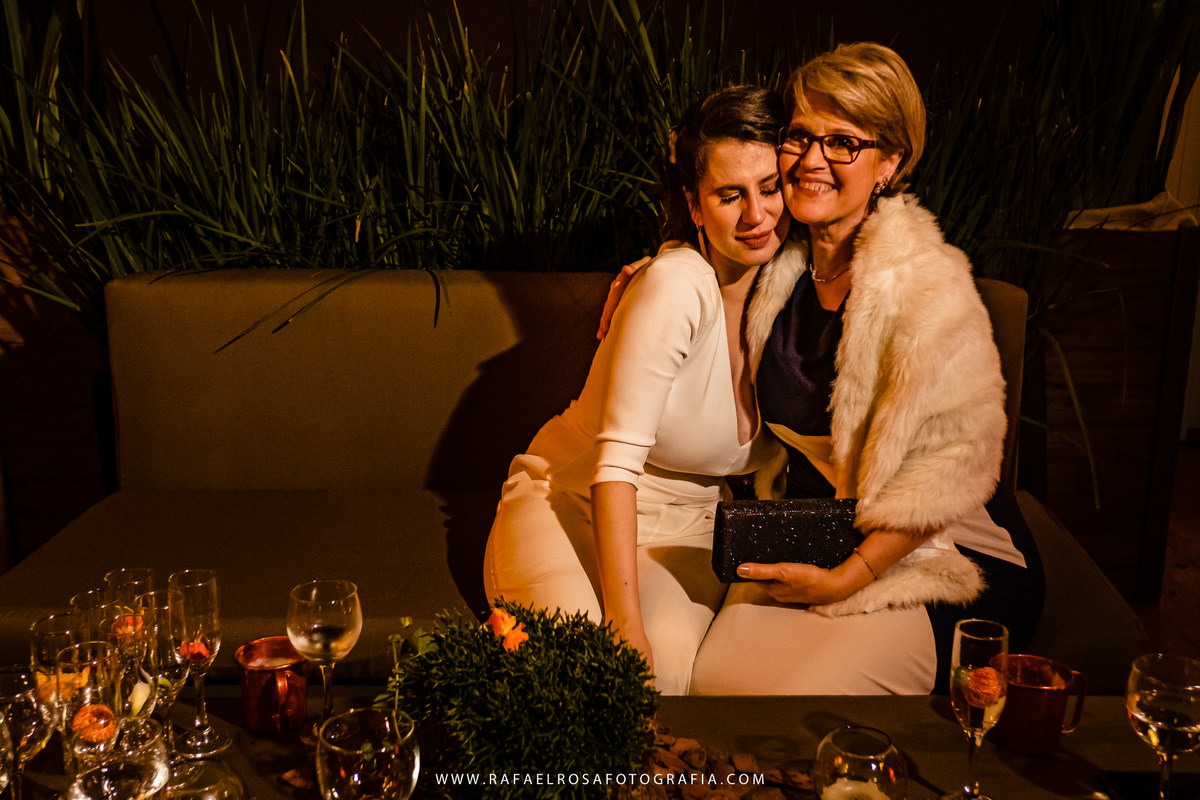 A celebração dessa união não poderia ser diferente deles, a começar pelo "vestido" da Lê - um macacão com um capa linda, casamento de dia, a entrada deles juntos, afinal estavam entrando numa nova etapa da vida juntos, um dia lindo, um casal conectado, famílias lindas e acolhedoras. O sorriso e a lágrima. Os amigos celebrando essa união. O pôr do sol.